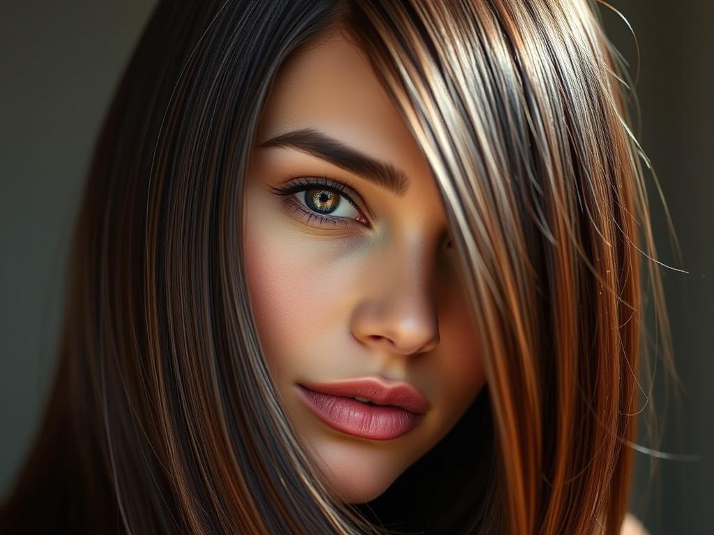 Mit den richtigen Techniken verwandeln Sie Ihren Look in ein zeitloses Kunstwerk voller Eleganz. Die Kombination aus Farbakzenten und glatter Textur verleiht dunkelbraunem Haar eine besondere Tiefe und Lebendigkeit.